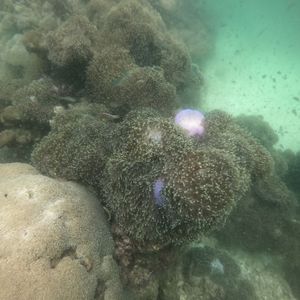 サピ島でシュノーケルをし、珊瑚の近くには小さな小魚、エイ、ウツボなど色々な魚が見れました。