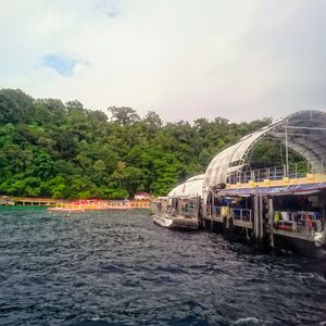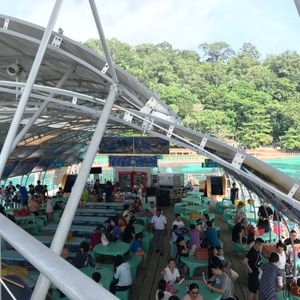 このツアーでのポイントはポンツーンでの席の確保です。ランカウイとペナンから2~3隻のフェリーがポンツーンに到着するようです。私たちのフェリーは1隻目だったのでまだ席はガラガラでしたが、フェリーが到着するたびに中国系の人たちでポンツーン内が埋め尽くされます。