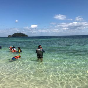 シュノーケリングとダイビングの混載ツアーです。ダイビング参加者へのインストラクションはほとんどなく、島には上陸せず、小舟に乗り換え一本目のダイビング。インストラクター1人に対し、3人でした。コースや見所等のブリーフィングはなく、そのままフリー潜降。加えて当日は透明度が低く、かなりの視界不良だったため恐さを感じました。その後、島に移動し食事を促されたのですが、カバンを取らせてもらえず、とにかく早く降りるよう促されました。そのためスマホや財布(少額)など全て船においていくことになり、せっかくのパヤ島の景色を撮れなかったのが残念です。またランチ休憩の時点で、すでに14時近く。予定を確認できるスタッフもおらず、結局船の迎えが来てから2本目があると分かりましたが、遅れや帰港の時間変更などの説明がないのでシュノーケリング班含め、戸惑っている参加者が多くいました。全体的に説明が足りなかったかなと思います。島でのシュノーケリングや海水浴は楽しそうでした。