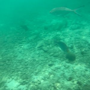 もう一つの桟橋の方は、水深5がメートルほどあり、岩場に集まるより大きな魚たちを見ることができます。午前と午後で4時間程シュノーケリングができるので大満足です。