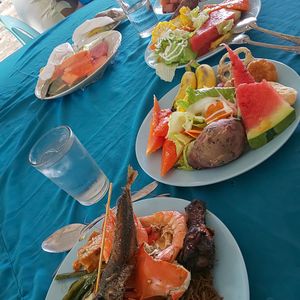 もう1組のカップルと4人だったのでプライベートツアーの様でお得な感じだった。天気も良好でコバルトブルーの空とエメラルドグリーンの海と白い砂浜とはこんな景色でしょうか。シュノーケリング中は荷物をガイドさんが見ていてくれるから安心。BBQというビュッフェは焼いてあるのに生臭いエビだったり熱々でないのであまり美味しく感じなかったが、色々出ていてあらかた食べた。