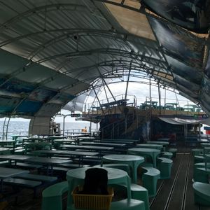 マイナス点として,16時00分にペナン行きの船が出るのに,14時45分でシャワーが終了となるのは時間がもったいないように思いました。また,シャワー室が4つしかないので,時間ぎりぎりまで遊んでいるとシャワー待ちの長蛇の列に並ぶことになります。ちなみにシャワーは水で,この日天候があまり良くなかったので,船上にいるときは寒い思いをすることになりました。