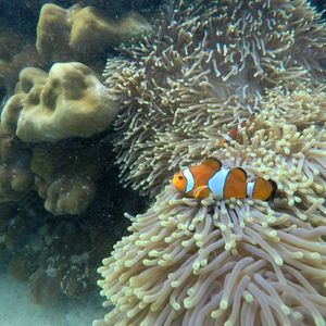 ただ、時たま視界がひらける場所では、多様なイソギンチャクとクマノミたちを見ることができました。