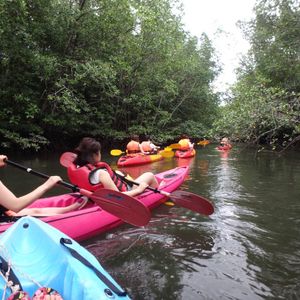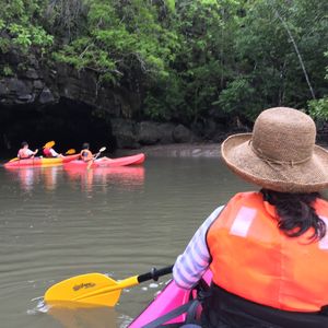 マングローブの生い茂る入江を自らカヤックを漕いで巡るアクティビティ。モーターボートのツアーと違って、細い入江の奥深くや狭い洞窟の中にも入っていけるので、森に棲む動物や水の中の生物が間近に見られるのが大きな魅力。鬱蒼としたマングローブ林の中は空気が澄み、シーンとした静寂がとても心地良い。案内をしていただいた現地ガイドの方は、日本語が堪能な上にとても感じが良く、マングローブや生物の説明も丁寧で分かりやすかった。ツアーが終わった後に供された夕食も、量・味ともに満足いくものだった。参加して良かった。お薦め!