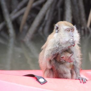 カヌーでは、マングローブに住み着く蟹を観察したり、野生のサルに出会ったりと、