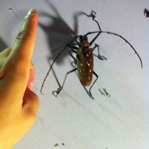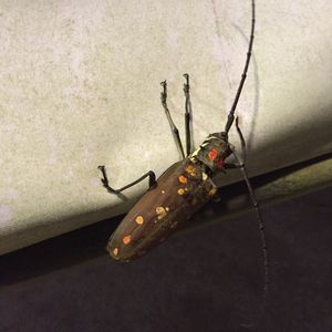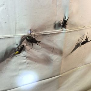 生憎の雨でバタフライガーデンでは、飛んでいる蝶をあまり観察することが出来ませんでしたが、、メインイベントの昆虫の見学(白いシーツをライトアップさせて昆虫を集めます)ではコーカサスオオカブト、クワガタ、カミキリムシを沢山、見ることが出来ました。