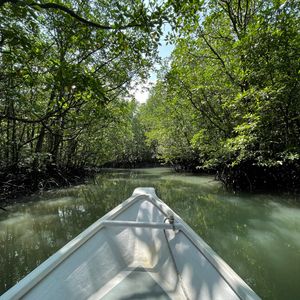 カヌーの練習をしてから、上流へ行けたので、安心してツアーに参加できました。カヌーの中と、上流まで移動する船の中はやや濡れていたため、短パン・水着・ビーチサンダルで行くことをおすすめします。虫除けはなくても大丈夫でした。マングローブは涼しいのですが、水筒に水を入れていくとより快適に過ごせそうです。食事は魚と野菜炒めが美味しく、ビールとソーダの2種あったのが良かったです。