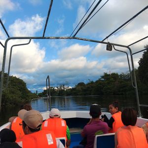 そのあとクルーズ1時間ほどに出発しました。子供含めて全員にライフジャケットが用意されているので安心でした。ガイドさんやボートの操縦士さんがサルや鳥を見つけるのがとても上手で、よく見える位置にボートを止めてくれてしっかり観察できました。テングザル含めて三種類のサル、キツツキ、サイチョウ、オオトカゲ、ワニなどたくさん見ることができました。ガイドさんたちがお客さんにたくさんの動物を見てもらおうと、一生懸命動物を探してくれたり、生態を教えてくれてとても良かったです。