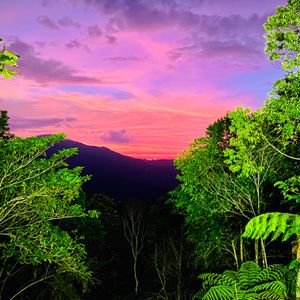 標高1000mくらいのところにあるレストランでマレーシア料理をお腹一杯食べて先ほどのファームへ戻る頃はちょうど日没 夕日がジャングルとマッチして素晴らしかった!!
