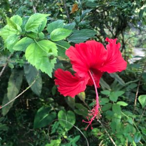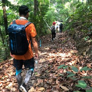 歩き始めてすぐにオオトカゲに遭遇しました。その後コウモリを見たり、マングローブやイチヂクの木や太くて大きなサルスベリの木などガイドさんから丁寧に教えていただきました。残念ながら野生の猿に遭遇することはありませんでした。動物にもっと会えたらより楽しかったと思いますが仕方がないことだと思えます。こんな機会がなければ海外の島をトレッキングすることはないと思うのでよい経験でした。トレイルに時々落ちているゴミが気になりましたが、これは参加者が捨ててしまうのだとしたら悲しいです。
