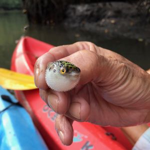 ツアー全体で6時間とあったので半分位は船の上とすると、船が初めての息子の船酔いを心配しましたが、その心配は杞憂に終わりました。天候に恵まれたのがよかったのでしょうが途中、途中にイベントがありたいくつさせない仕組みになってました。最初の蝙蝠の鍾乳洞も見ごたえありますし、養魚所も珍しい魚がみれたり触れたり、といった感じです。マングローブの観察中に蛇を見つけるのも一興でした。一番のメインは洋上での釣りなんでしょうね。簡単な仕掛けですがそれなりに釣れます。その釣った魚をすぐに昼食で食べれて満足です。息子にとっても非常に印象の残る素敵なツアーでした。また行きたいです。