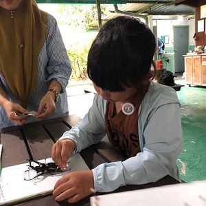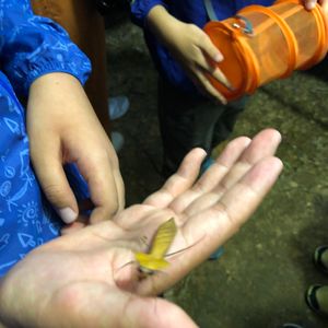 標本作りでは途中、山中にライトアップを仕掛けたところまで移動して飛んできた!?カブトムシ、クワガタ、セミ(世界で一番大きいらしい)、枯葉カマキリ等々を子どもも大人も捕まえたり写真を撮ったり楽しいひと時でした。