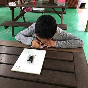 前日まで台風で天候が心配でしたが息子が大好きな図鑑で見た生きた大きなカブトムシ、クワガタを触ることができツアーで一番、目がキラキラしていました。