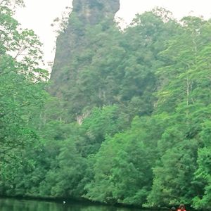 カヤックに乗ってからは、カニクイザルと写真を撮ったり、大きなトカゲを見たり、カワセミやキツツキの声を聞いたり…岩山もゆっくり見ることが出来て、水面に映る青空と岩山の写真も撮れました!