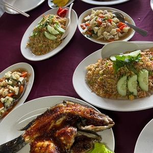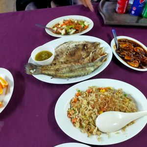 ・カヤックが終わったら、水上レストランにもどり、晩御飯。正直、衛生面で食べられるか心配でしたが。味付けはよく、大きな鯛、野菜炒め、スイカ、チャーハン、その他。ビールとジュースも飲み放題でした。