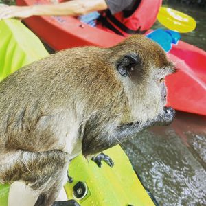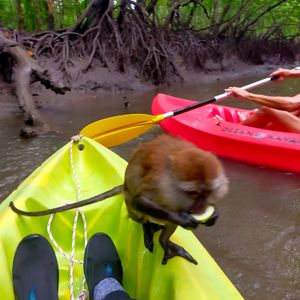 カヤックでは、途中に赤ちゃんを抱いた猿に出会い、人間慣れしているせいか私の足元に来てくれたときは感動しました。