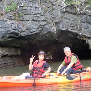 中学生の長男と私の二人で参加しました。その日はたまたま、参加者は私たち二人だけだったので、貸切状態のツアーになりました。日本語の話せるガイド(ボイさん)から、操作のコツを教えてもらい、慣れないカヤックでもすぐに操作できるようになりました。ボイさんは親切なガイドさんで、ツアー中も安心できましたし、フォトスポットでボイさんから写真をとりませんかと声をかけてもらえのもありがたかったです。ツアー参加は二人だけだったこともあり、マングローブの説明なども丁寧にしてもらえたと思います。