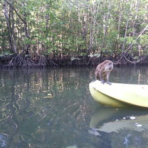 初めてのカヤックでしたが、丁寧な説明と練習で転覆することなくできました。かわいいサル、ふぐの子供、青い蟹をガイドさんが見つけては紹介してくれました。間近で見れて、触れてとても貴重な経験でした。夕飯は海に浮かぶお店でおいしかったです!