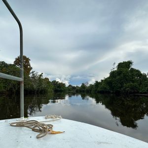 そのあとクルーズ1時間ほどに出発しました。子供含めて全員にライフジャケットが用意されているので安心でした。ガイドさんやボートの操縦士さんがサルや鳥を見つけるのがとても上手で、よく見える位置にボートを止めてくれてしっかり観察できました。テングザル含めて三種類のサル、キツツキ、サイチョウ、オオトカゲ、ワニなどたくさん見ることができました。ガイドさんたちがお客さんにたくさんの動物を見てもらおうと、一生懸命動物を探してくれたり、生態を教えてくれてとても良かったです。