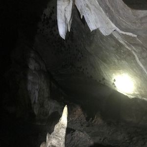 鍾乳洞探索では沢山のコウモリの寝ている光景をみたり、貝の化石をみたり。