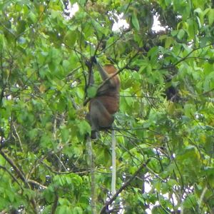 天狗ザルはガイドさんや船頭さんが目ざとく見つけて近くに舟をとめてじっくり見せてくれます。運良く天狗ザル、シルバーモンキー、カニクイザルに会うことができましたが、私の肉眼では天狗の鼻までははっきり分からず、猿がいる!くらいな感じで、主人がスマホで撮った動画で事後確認しました。