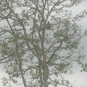 猿たちは木の上の高いところにいるので肉眼では小さいです。