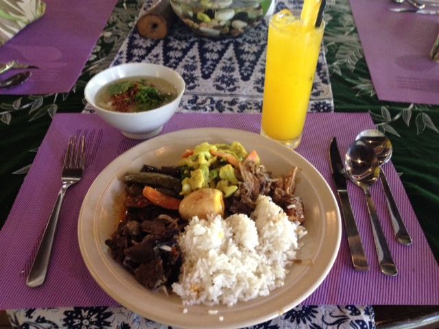 この後すぐ昼ごはんだと思ってたので、控えめに食べたのですが、キャノピーウォークとラフレシアの後で昼食でした。最初にきちんと行程を頭に入れておけばよかった!暑くて、足湯はパスしました。日本でいくらでもできるし。