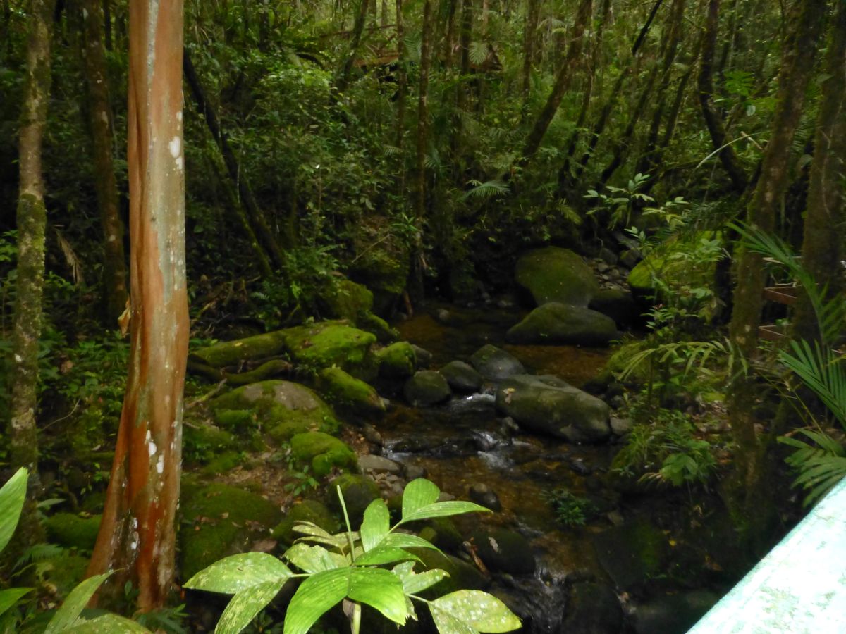 雨季のクリスマス時期に訪れたため、キナバル山には雲がかかっていましたし、花も少ない季節でしたが、ガイドさんの説明でジャングルの植物のことがとてもよく理解できました。ただ、もっとすごいジャングルのなかを歩くのかと思っていたのですが、キナバル山公園管理事務所近くの植物園とポーリン温泉のキャノピーウォークだけだったので、ジャングルを垣間見た程度でした。また、土曜日に訪れたので、ポーリン温泉は地元の家族連れでとても混んでいて、また半分が改修中だったこともあり、入浴どころではありませんでした。