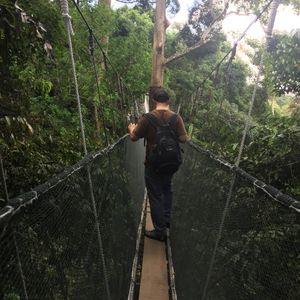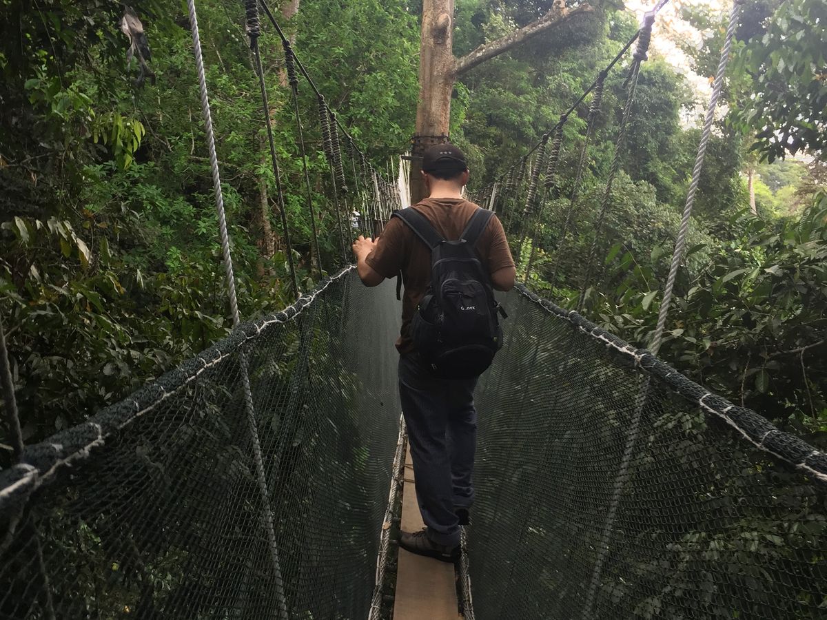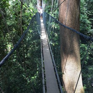 GWに初めてのコタキナバル。ビーチ中心のアクティビティの中、熱帯雨林に行く1日ツアーに参加しました。一番のお目当ては、地上30m超のつり橋キャノピーウォークを渡ることでした。当日は一番高い40mのところにあるものはメンテナンス中で渡れませんでしたが、他の3本でも十分な高さとスリルで楽しめました。その他に、日本では見られない珍しい植物も見られました。温泉は足湯のみなので、膝まで捲り上げやすい服装がいいです。