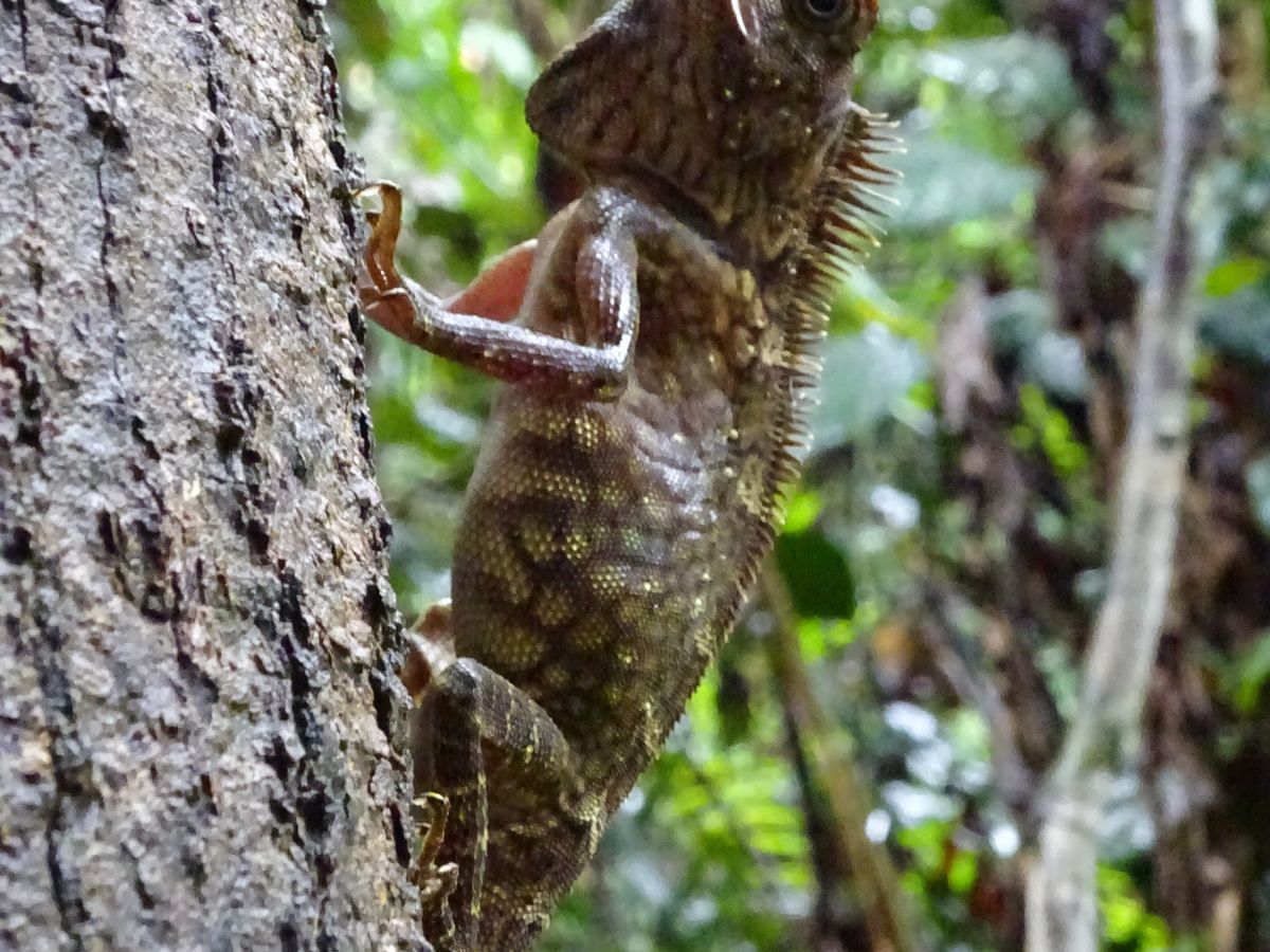 自然公園?に着くとガイドさんが小さな蛇を発見!!その後、植物の説明を受けながら公園内(ジャングル?)を進んで行きます。途中にはカメレオンも現れました♪