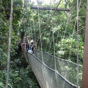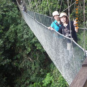 キャノピーウォークは渡る部分の幅が思っていた以上に狭かったですが、そんなに怖くはなく、とても楽しかったです。途中15分程急な山道の登りがあるので、足腰の弱い人は無理かな?雨でも降ったのか道がぬかるんで滑りやすかったので、サンダルよりスニーカーがいいと思います。