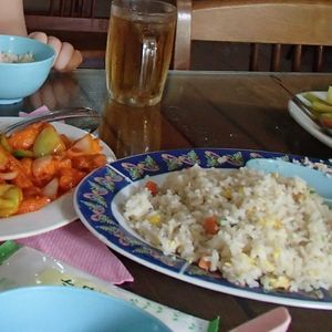ランチはとても日本人好みの味付けで、スープ、揚げ物のあんかけ、青菜の炒め物、チャーハン、チキン、パパイヤ(?)どれもとても美味しかったです。