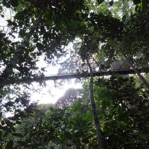地上30mにあるつり橋を使ったキャノピーウォークも楽しかった。プラットホームで、上を見るとさらに上方に木の枝が青い葉をつけていました。