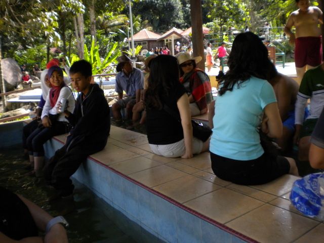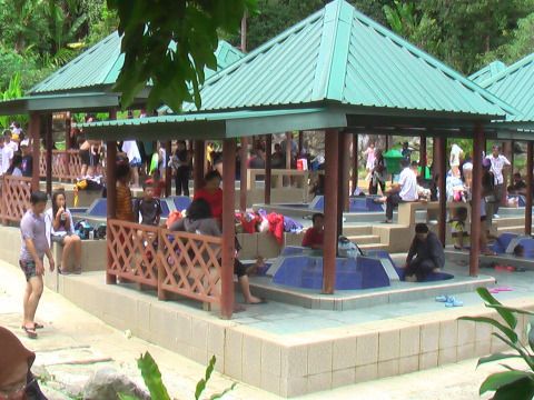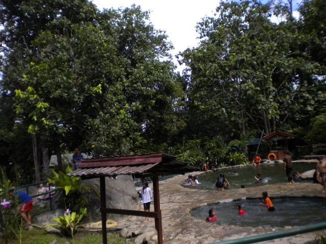 ポーリン温泉へ行くまでの途中の道は、地盤が悪く道路工事中でしたので、着くまで時間がかかりました。トイレ休憩したナバル村では水がなくトイレ使用禁止でしたが、ガイドさんがミネラルウォータを使うからと言って交渉してくれてやっとトイレが使用できました。ポーリン温泉は蛇口をひねってお湯を貯めるタイプですので1時間以上時間がないとつかることはできません。気温30度以上で湯温40度くらいでしたのでほんの少し足湯に足をつけるだけで汗が出てきますので夏には向かないです。隣に水のロックプールがあるので水着に着替えて汗をながすのがベストだと思います。日本人は子供のみ、外人は大人も子供もプールで遊んでいました。もう少し時間があれば吊橋で出た冷や汗をプールで流したかったです。渋滞で昼食は2時半過ぎになってしまいましたが、バスの中でガイドさんが地元の果物バナナやマンゴスチンなどを配ってくれて食べていたのでそんなに空腹を感じませんでした。キナバル公園は植物園では珍しいうつぼかづらが見られます。別料金を払ってラフレシアも見ました。もう少し道路が良くなって見学時間が多くとれればもっと楽しめると思います。