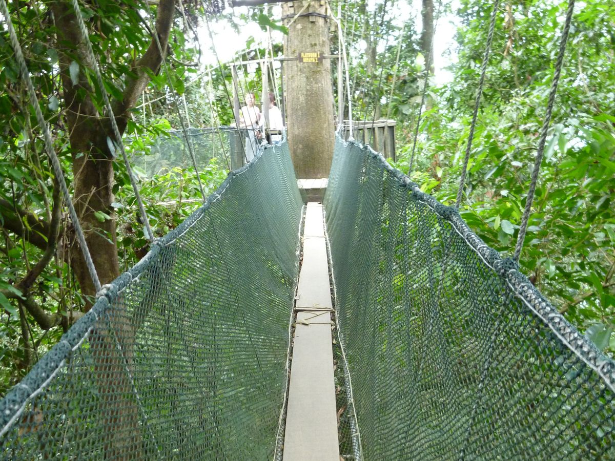 (キャノピーウォークまでの登り階段が少し大変ですが、キャノピーウォークは高所ですが細い木の板の上を歩くだけで安全です)