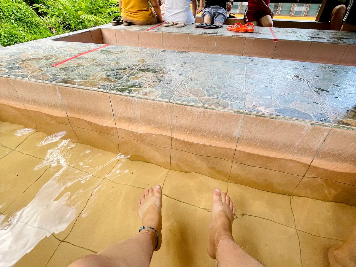最初の目的地はポーリン温泉でしたがここで一悶着。私たちが到着した時点で入場規制の200名を大幅に超えてしまっていたようです(この間何人かローカルのお客さんが来てましたが皆引き返していきました…)。しかしガイドさんが諦めず交渉してくれたおかげで何とか入れてもらえることに!ガイドさんありがとうございます…!キャノピーウォークまではジャングルの中をしばらく山登りです。道中珍しい植物や虫の解説も挟んでくれて退屈しませんでした。キャノピーウォークは高さの割に柵が低くて結構スリリングでした。風が通って非常に気持ちよかったです。足湯や蝶々の展示館などもありましたが軒並みコロナ影響でクローズ。。残念でしたがまたいつか行けるようになることを祈るばかりです。