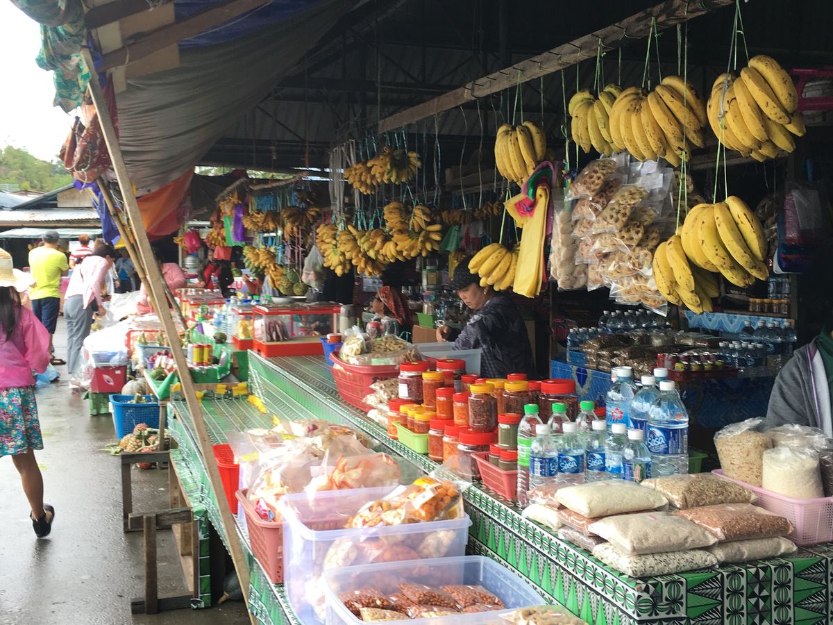 移動すること2時間、天気も良くキナバル山がはっきりと見えてきました。途中のトイレ休憩の場所が沢山のお店で賑わっていて