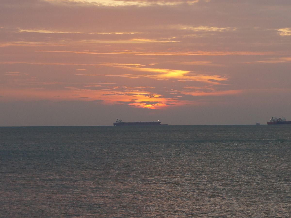 この日はお天気も良く、タンカーがぼんやり遠くに見えるマッラッカ海峡に沈む夕日、