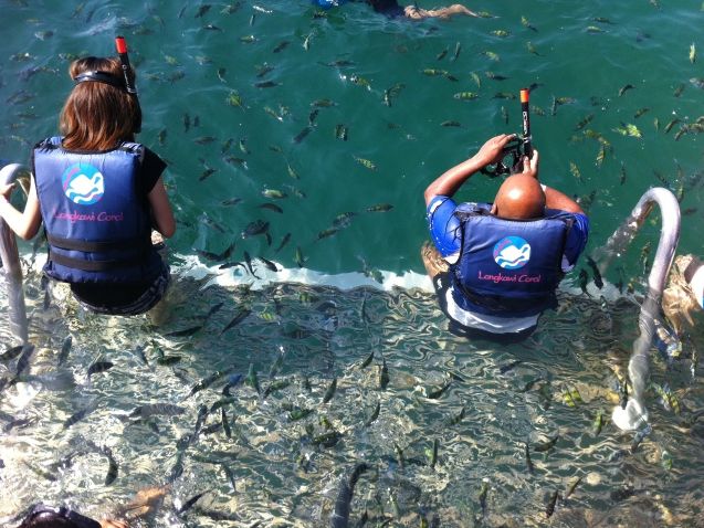 天気が悪かったからか、行きの船で船酔い。全て吐いてしまいました。しかし、島に到着してからは、天気もよくなり、楽しくシュノーケリングをしました。島でリクライニングチェアで横になってゆっくりする事ができます。が、蚊にさされたりするので注意。また、そばにはごみがたくさんあり、ちょっと残念だったです。プラットフォームでは、着替えも食事もちゃんとできます。が、トイレはとても汚いので必ずウェットティッシュは持って行って下さい。