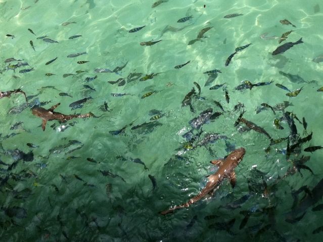 船はピピ島から少し離れた浮き桟橋に着きます。餌付けされているのか、桟橋の周りは魚が一杯です。桟橋の近くでシュノーケリングしてたっぷり魚を見た後は、桟橋からボートでピピ島に上陸です。ピピ島でもシュノーケリング。サメもいてびっくりでした。