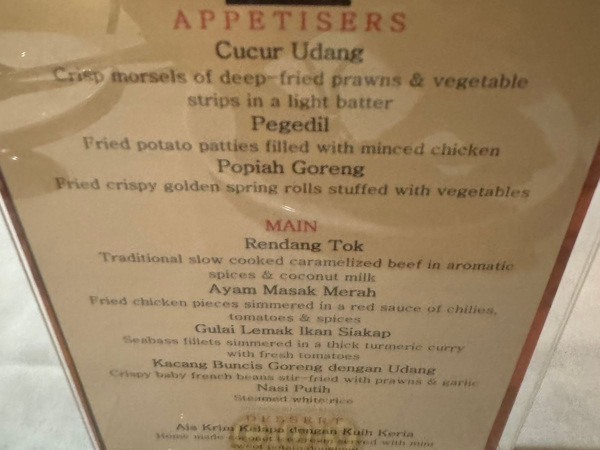 他では食べることのできないマレー料理であったかと思います。大満足です。