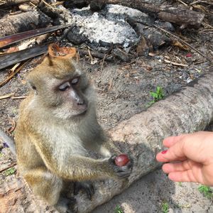 砂浜に停泊した小さなボートに乗り込みマラッカ海峡へクルージング。海風と波を感じながら釣り場へ向かいました。ワニやウサギの形をした岩をみたり、カニクイザルを見たりしながらのこのクルージングも結構楽しめました。釣りポイントにつくと早速釣り開始。針と糸とおもりという至ってシンプルな仕掛けでしたが、釣り糸を垂らすと早速ヒット。イシモチ、カワハギ、キスなどが釣れました。2時間ほど釣りを楽しんだ後、モンキービーチに移動し、バーベキューをしました。新鮮な魚だったのでとてもおいしかったです。モンキービーチではカニクイザルやクロリス、シロマブタザルも見ることができました。今回のツアーは私たち夫婦とお母さんと小学生・園児の3人連れの5名での参加でしたが、みんな楽しんでいました。ペナンの自然を満喫するには最高のツアーです。