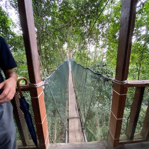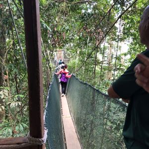 キャノピーウォークは4本ぐらいの細い橋のようなものを渡ります。高所恐怖症の人は少し怖いかもしれないです。私は高いところが大好きなので楽しかったです。周りは木がたくさんでした。