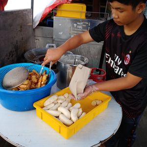 揚げバナナの屋台で1リンギットで食べた揚げバナナは美味しかったー!多分英語は通じないので1リンギット札を手渡せばOK!オススメです。