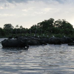 ボートから日没も観る事ができ、水牛の群れにも遭遇