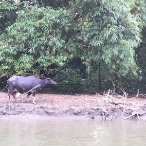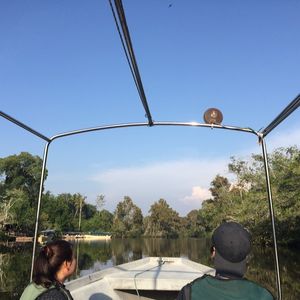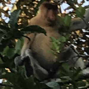 天狗ザルはガイドさんや船頭さんが目ざとく見つけて近くに舟をとめてじっくり見せてくれます。運良く天狗ザル、シルバーモンキー、カニクイザルに会うことができましたが、私の肉眼では天狗の鼻までははっきり分からず、猿がいる!くらいな感じで、主人がスマホで撮った動画で事後確認しました。