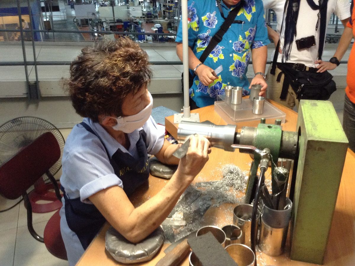 最後はピューター工場見学。スズ製品の製造過程を見学できます。直売もあります。