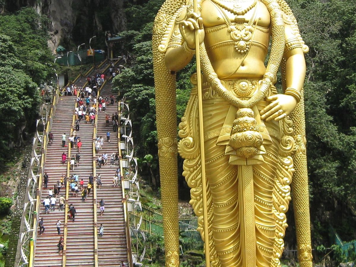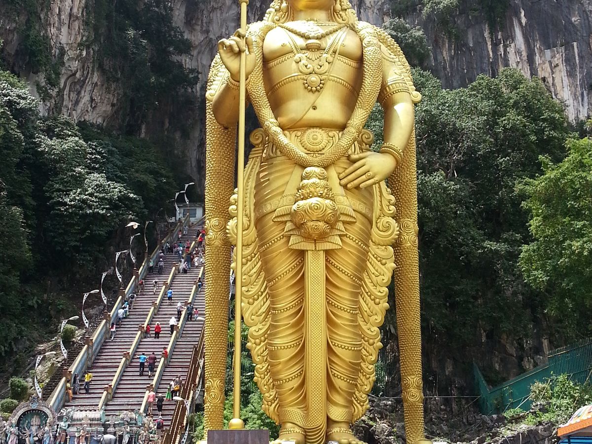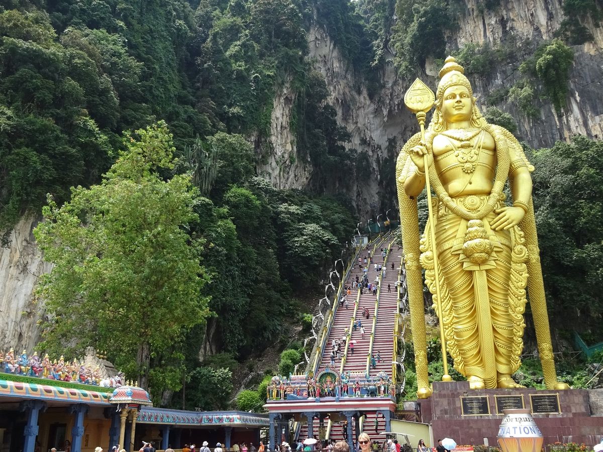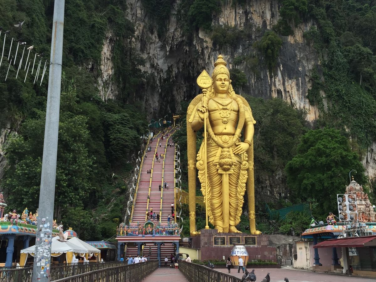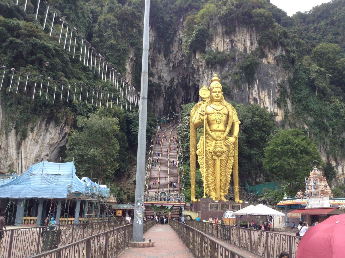 午後は何と言ってもバトゥー洞窟。入口手前右側の黄金の銅像に圧倒されます。