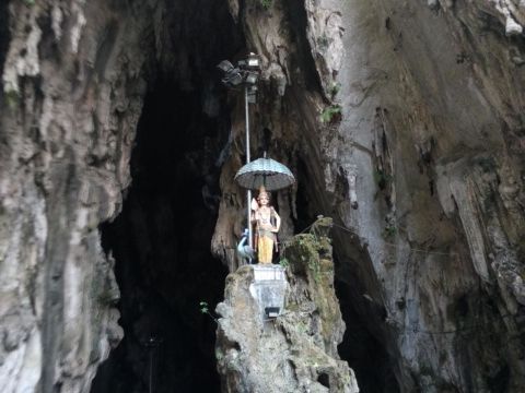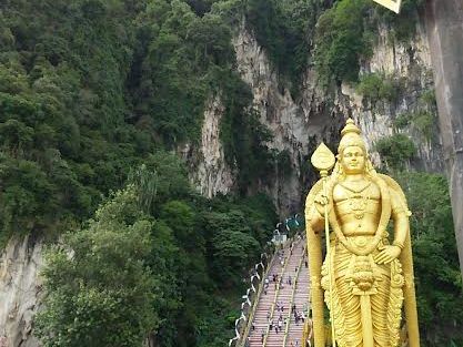 階段は272段、上のほうに上がると鳩がたくさんいるので、糞を落とされないようにご注意ください。猿もいました。鍾乳洞の中に寺院があり、また、洞窟内は吹き抜けになっているので、涼しくて快適でした。