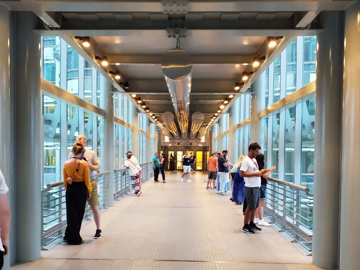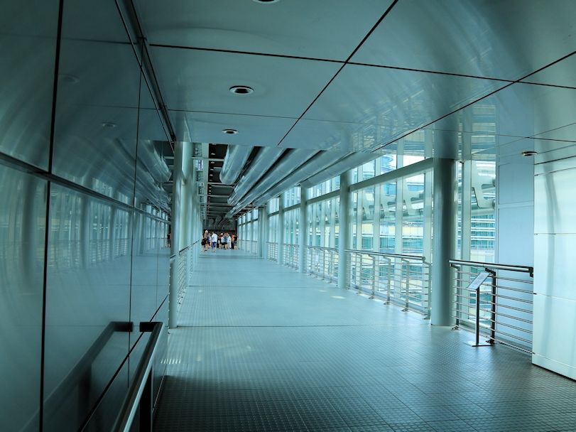 はじめに、タワー間のブリッジに登りました。タワーが風で揺れたりすると、タワー間の距離が微妙に変わるので、ブリッジの幅に可動性があるような説明を受けました。その後タワーの最上階まで上がりました。隣のワターの頂上近くの高さまで上がったので、最上階とわかりました。遠くまで見ることができて、素晴らしい眺めでした。